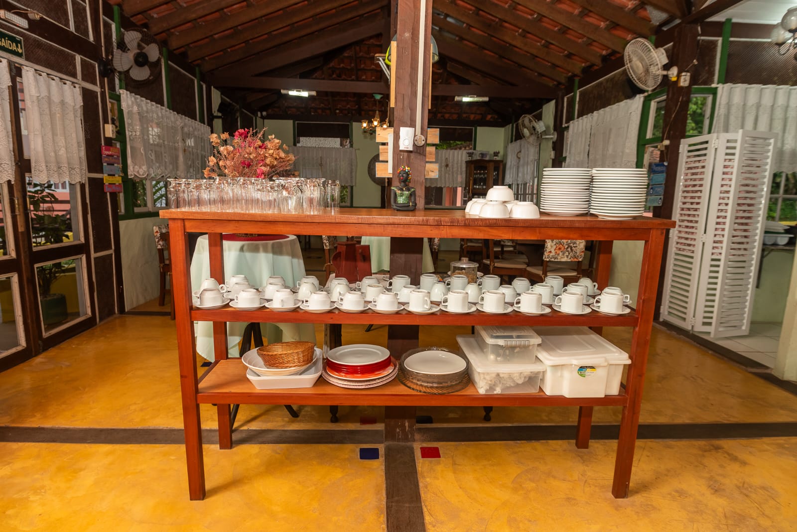 Pães artesanais, bolos feitos no dia, frutas da estação, sucos naturais, queijos frescos e delícias típicas que resgatam o sabor da simplicidade — tudo servido em um ambiente rodeado pela natureza, onde o verde da mata e o canto dos pássaros tornam a refeição ainda mais especial.